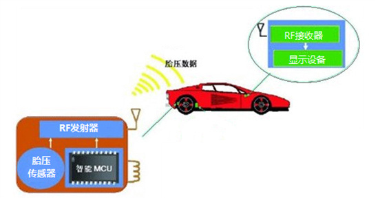 利用安裝在每一個(gè)輪胎里的傳感器來直接測(cè)量輪胎的氣壓,利用無線發(fā)射器將壓力信息從輪胎內(nèi)部發(fā)送到中央接收器模塊上的系統(tǒng),然后對(duì)各輪胎氣壓數(shù)據(jù)進(jìn)行顯示。